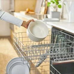 - Modern ceramic bowl with a soft, cream color elevates your dog’s dinnerware.